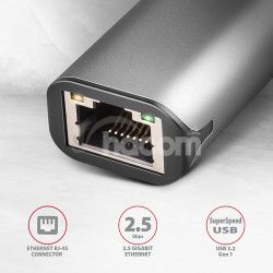 AXAGON ADE-25RC USB-A 3.2 Gen 1 - 2.5 Gigabit Ethernet sieťová karta, Realtek 8156, auto install, šedá ADE-25RC