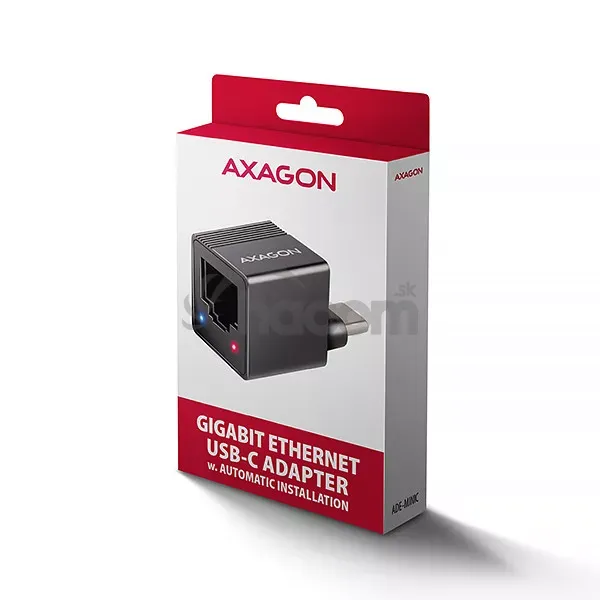 - AXAGON ADE-MINIC USB-C 3.2 Gen 1 - Gigabit Ethernet MINI sieťová karta, Realtek 8153, auto inštal ADE-MINIC