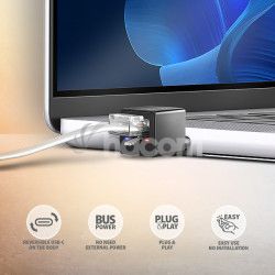 • Asymetricky umiestnený USB-C konektor na zamedzenie blokovania susedného portu notebooku.