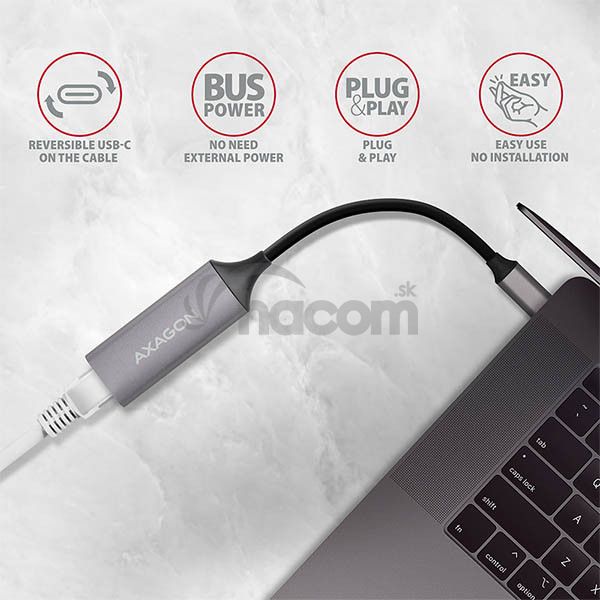 - AXAGON ADE-TRC, USB-C 3.2 Gen 1 - Gigabit Ethernet sieťová karta, auto instal, titánovo šedá ADE-TRC