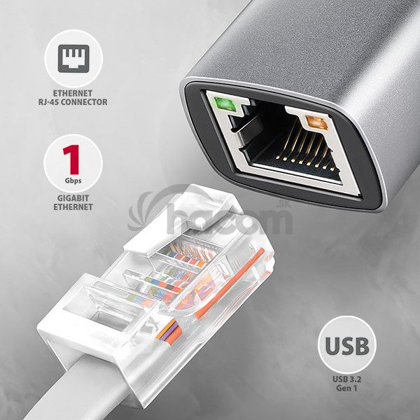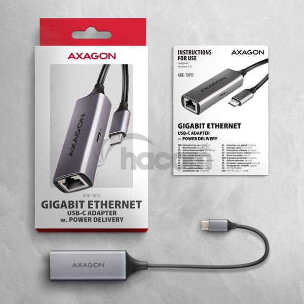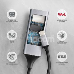 - AXAGON ADE-TXPD, USB-C 3.2 Gen 1 - Gigabit Ethernet sieťová karta, Asix AX88179, PD 100W, auto inštal ADE-TXPD