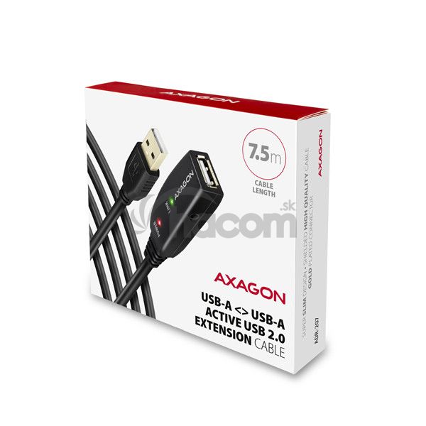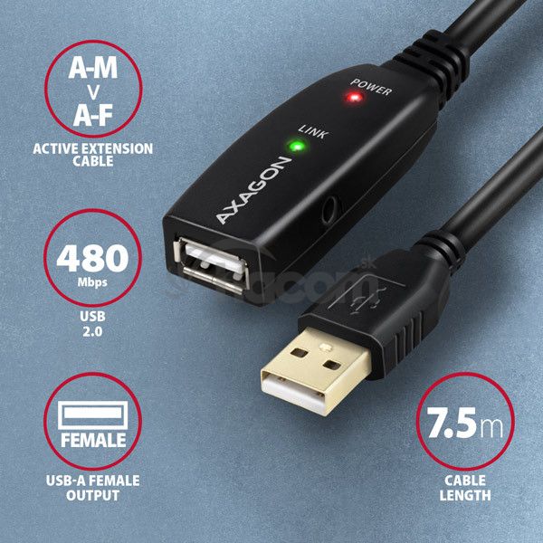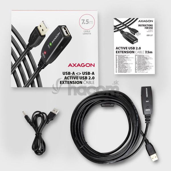 - AXAGON ADR-207, USB 2.0 AM -> AF aktivní predlžovací / repeater kábel, 7.5m ADR-207