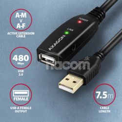 AXAGON ADR-207, USB 2.0 AM -> AF aktivní predlžovací / repeater kábel, 7.5m ADR-207