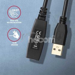 • USB 2.0 A-M > A-F aktívny kábel dĺžky 10 m,