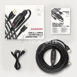 AXAGON ADR-215B, USB 2.0 AM -> BM aktívny prepojovací / repeater kábel, 15m ADR-215B