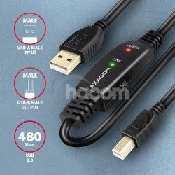 AXAGON ADR-220B, USB 2.0 AM -> BM aktívny prepojovací / repeater kábel, 20m ADR-220B