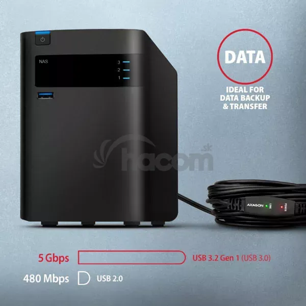 Vďaka použitému USB 3.2 Gen 1 (predtým USB 3.0) rozhraniu si môžete užívať rýchlosť prenosu dát až 5 Gbps. Tak kábel využijete aj na zariadení vyžadujúcich väčšiu rýchlosť ako sú zálohovacie systémy, dátové úložiská NAS a ďalšie.