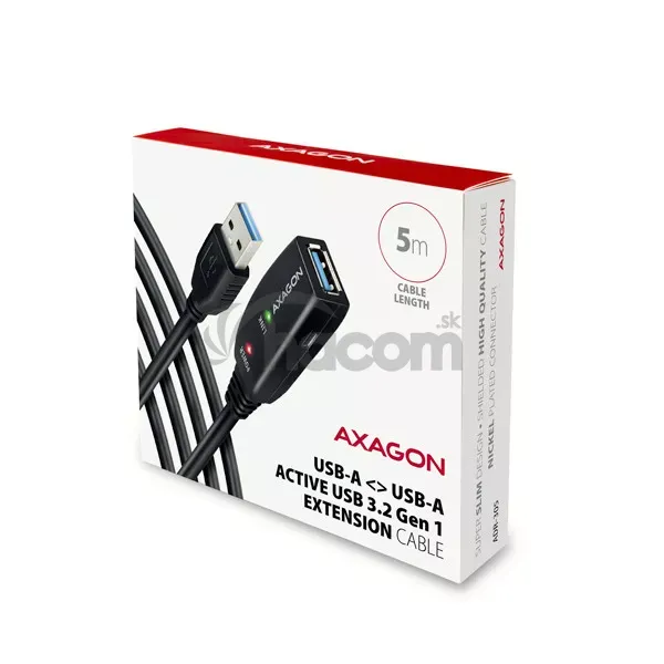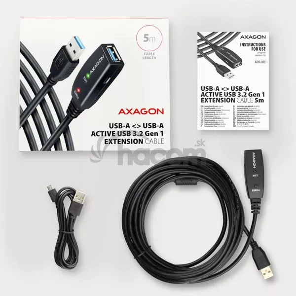 Aktívny predlžovací USB 3.2 Gen 1 kábel AXAGON ADR-305 dĺžky 5 metrov je ideálny na prepojenie Vášho počítača s USB zariadením ako je myš, klávesnica, webkamera, tlačiareň, skener, ploter a ďalšími. Aktívny USB repeater kábel zosilňuje priechodný signál a umožnuje pripojiť USB zariadenie na výrazne väčšiu vzdialenosť , než Vám umožní pasívny kábel. Dosah kábla je možné ďalej predĺžiť použitím niekoľkých káblov za sebou.