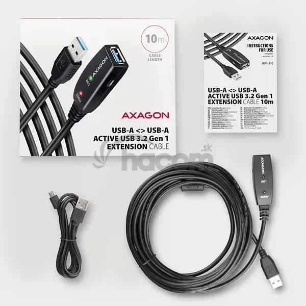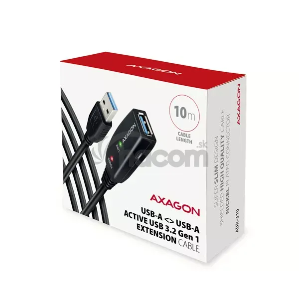 Aktívny predlžovací USB 3.2 Gen 1 kábel AXAGON ADR-310 dĺžky 10 metrov je ideálny na prepojenie Vášho počítača s USB zariadením ako je myš, klávesnica, webkamera, tlačiareň, skener, ploter a ďalšími. Aktívny USB repeater kábel zosilňuje priechodný signál a umožnuje pripojiť USB zariadenie na výrazne väčšiu vzdialenosť , než Vám umožní pasívny kábel. Dosah kábla je možné ďalej predĺžiť použitím niekoľkých káblov za sebou.Vďaka použitému USB 3.2 Gen 1 (predtým USB 3.0) rozhraniu si môžete užívať rýchlosť prenosu dát až 5 Gbps. Tak kábel využijete aj na zariadení vyžadujúcich väčšiu rýchlosť ako sú zálohovacie systémy, dátové úložiská NAS a ďalšie.