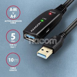 AXAGON ADR-310, USB 3.2 Gen 1 AM -> AF aktívny predlžovací / repeater kábel, 10m ADR-310