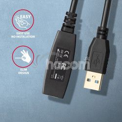 - AXAGON ADR-310, USB 3.2 Gen 1 AM -> AF aktívny predlžovací / repeater kábel, 10m ADR-310