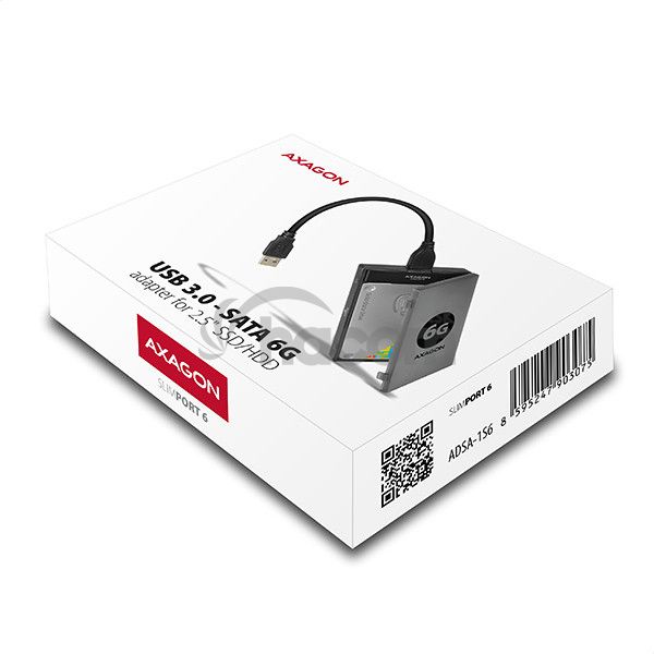 Kompaktný vysokorýchlostný adaptér AXAGON ADSA-1S6 SLIMport6 s USB 3.0 a SATA 6G rozhraním určený pre jednoduché pripojenie SSD alebo 2.5 "SATA disku.Šikovný pomocník pre rýchle pripojenie SSD alebo notebookového disku vrátane podpory bootovanie.