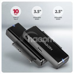 - AXAGON ADSA-FPX, USB-C 10Gbps - SATA 6G, 2.5"/3.5" SSD/HDD FAST PORT X adaptér, vr. AC napájače ADSA-FPX
