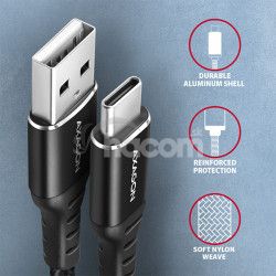 - AXAGON BUCM-AM15AB, HQ kábel USB-C USB-A, 1.5m, USB 2.0, 3A, ALU, oplet, čierny BUCM-AM15AB