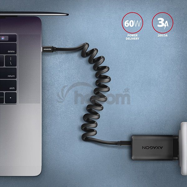 - AXAGON BUCM-CM10TB, TWISTER kábel USB-C USB-C, 0.6m, USB 2.0, PD 60W 3A, ALU, tpe, čierny BUCM-CM10TB