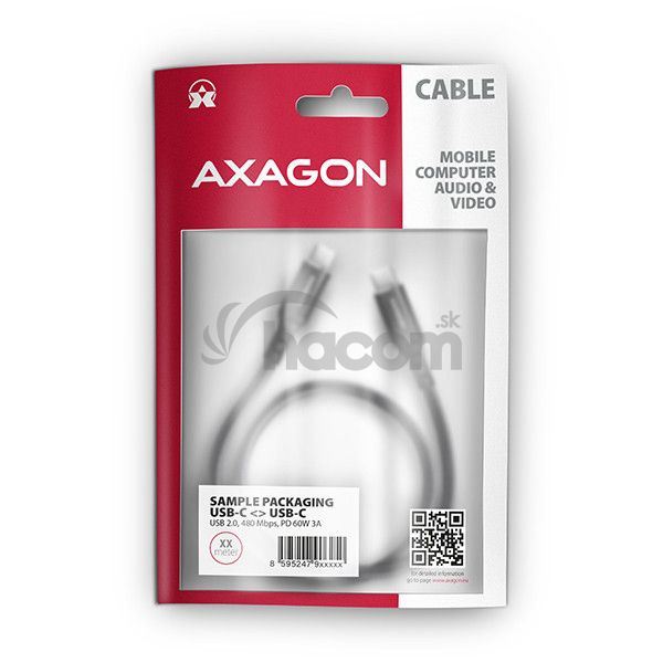 Prémiový prepojovací USB-C <-> USB-C dátový a nabíjací AXAGON BUCM-CM20AB HQ USB 2.0 kábel s konektormi USB-C male na oboch koncoch. Kábel je navrhnutý na synchronizáciu dát a nabíjanie notebookov, telefónov, tabletov a ďalších mobilných zariadení. Podporuje prenos dát rýchlosťou až 480 Mb/sa nabíjanie prúdom až 3A . Kábel je kompatibilný s nabíjacími technológiami Power Delivery 60W, Quick Charge , Samsung AFC, Huawei FCP, SMART a ďalšími.Odolný dátový a napájací kábel s predĺženou životnosťou je opatrený kovovými koncovkami , konektormi s poniklovaným povrchom a pozlátenými kontaktmi. Vodiče kábla sú vyrobené z pocínovanej bezkyslíkatej medi. Kvalitná izolácia kábla, vyrobená z flexibilného TPE, zaručuje maximálnu odolnosť, ale zachováva aj dostatočnú ohybnosť. Konečnú pevnosť kábla dodáva nylonový oplet . Bonusom je praktická páska na jednoduché zbalenie kábla.