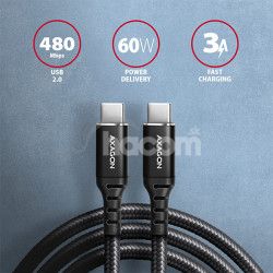 - AXAGON BUCM-CM20AB, HQ kábel USB-C USB-C, 2m, USB 2.0, PD 60W 3A, ALU, oplet, čierny BUCM-CM20AB