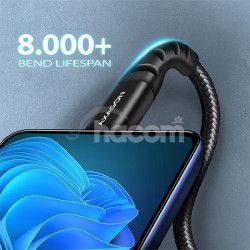 Napájacie vodiče 22AWG (nižšie číslo = väčší prierez a nižší odpor vodiča) garantujú rýchle nabíjanie telefónov a ďalších mobilných zariadení. Kábel podporuje aj nabíjanie notebookov technológiou Power Delivery 60W. Dátové vodiče 30AWG spolu s kvalitným tienením, zaisťujú spoľahlivý prenos dát . Dvojité tienenie chráni prenášané signály pred nepriaznivým rušením.