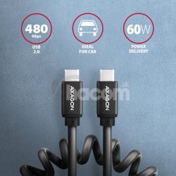 - AXAGON BUCM-CM20TB, TWISTER kábel USB-C USB-C, 1.1m, USB 2.0, PD 60W 3A, ALU, tpe, čierny BUCM-CM20TB