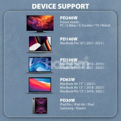 • Podporované technológie nabíjania: Power Delivery 2.0/3.0/3.1 - 240W (48V/5A), Qualcomm Quick Charge 2.0/3.0/4+, PPS, Samsung Adaptive Fast Charging, Super Fast Charging, Huawei Fast Charge Protocol, Apple Fast SMART Charging a ďalšie.