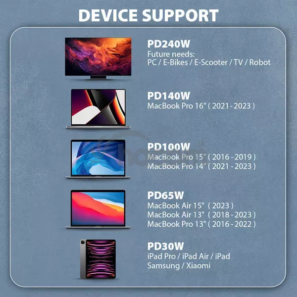 • Vhodný pre počítače, notebooky, mobilné telefóny, tablety, powerbanky, elektrické náradie a ďalšie zariadenia s USB-C konektorom.