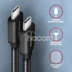 - AXAGON BUCM3-CM20AB, SPEED kabel USB-C USB-C, 2m, USB 3.2 Gen 1, PD 60W 3A, ALU, oplet, černý BUCM3-CM20AB