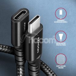 - AXAGON BUCM32-CF15AB predlžovací kábel USB-C (M) USB-C (F), 1.5m, USB 20Gbps, PD 240W ALU oplet BUCM32-CF15AB