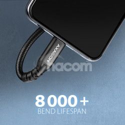 Odolný dátový a napájací kábel s predĺženou životnosťou je opatrený kovovými koncovkami , konektormi s poniklovaným povrchom a pozlátenými kontaktmi. Vodiče kábla sú vyrobené z pocínovanej bezkyslíkatej medi. Kvalitná izolácia kábla, vyrobená z flexibilného TPE, zaručuje maximálnu odolnosť, ale zachováva aj dostatočnú ohybnosť. Nylonový oplet dodáva káblu konečnú pevnosť. Napájacie vodiče 22AWG (nižšie číslo = väčší prierez a nižší odpor vodiča) garantujú rýchle nabíjanie telefónov a ďalších mobilných zariadení. Dátové vodiče 32AWG spolu s kvalitným tienením, zaisťujú spoľahlivý prenos dát . Trojité tienenie chráni prenášané signály pred nepriaznivým rušením.
