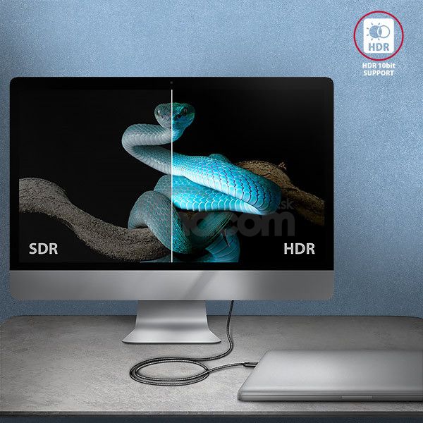 • Podpora protokolu DisplayPort 1.4a, 2.0 pre prenos zvuku a videa až do rozlíšenia Full Ultra HD 8K @ 60Hz, HDR10 – je potrebný USB-C port s podporou DisplayPort Alternate Mode (DP Alt Mode) alebo Thunderbolt 3/4 port.