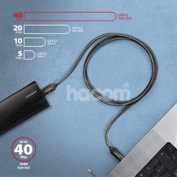 Prémiový prepojovací USB-C <->USB-C dátový a nabíjací AXAGON BUCM4X-CM05AB NewGEN+ kábel s konektormi USB-C male na oboch koncoch. Kabel má plnohodnotné (Full-featured) zapojenie podľa špecifikácie USB 40Gbps (USB4 Gen 3x2) a je plne kompatibilný so špecifikáciou Thunderbolt 3 a Thunderbolt 4 . Je navrhnutý pre najrýchlejšie dátové prenosy, prenos videa a nabíjanie notebookov, telefónov, tabletov. Umožňuje pripojenie monitorov, dokovacích stanic a externých SSD diskov.Kabel podporuje prenos dať rýchlosťou až 40 Gb/s , taktiež umožňuje prenášať obraz až do rozlišení 8K/60Hz Full Ultra HD a zvuk.