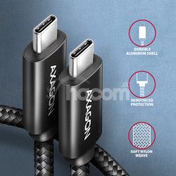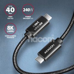- AXAGON BUCM4X-CM10AB NewGEN+ kábel USB-C USB-C, 1m, USB4 Gen 3×2, PD 240W 5A, 8K HD, ALU, oplet BUCM4X-CM10AB