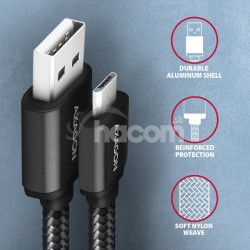 - AXAGON BUMM-AM10AB, HQ kabel Micro USB USB-A, 1m, USB 2.0, 2.4A, ALU, oplet, černý BUMM-AM10AB