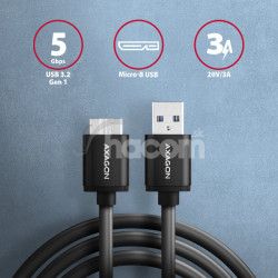 - AXAGON BUMM3-AM10AB, SPEED kábel Micro-B USB USB-A, 1m, USB 3.2 GEN 1, 3A, ALU, tpe, čierny BUMM3-AM10AB