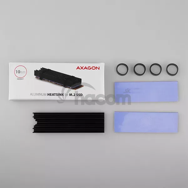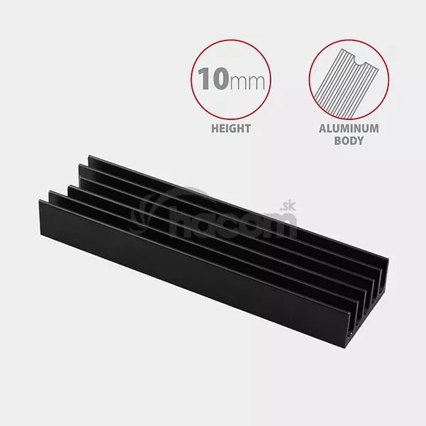 - AXAGON CLR-M2L10, hliníkový pasívny chladič pre M.2 2280 SSD, výška 10 mm CLR-M2L10