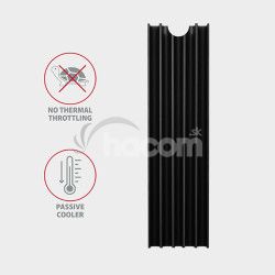 Pasívny chladič AXAGON CLR-M2L10 ALU pre ideálne chladenie výkonných M.2 SSD diskov, najmä NVMe. Univerzálny heatsink možno použiť na M.2 karty s rozmerom 22 x 80 mm. Dve dodávané teplovodivá podložky umožní montáž chladiča pre všetky jednostranné i obojstranné M.2 SSD disky.Rebrovaný hliníkový chladič vysoký 10 mm napomáha lepšiemu odvodu tepla vzniknutého pri prevádzke M.2 SSD disku a umožňuje tak znížiť teplotu disku až o 25 ° C. Predlžuje sa tak životnosť SSD disku a zamedzí sa spomaľovanie rýchlosti disku tzv. "Thermal škrtenia".
