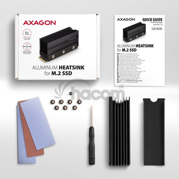 - AXAGON CLR-M2XL, hliníkový pasívny chladič pre obojstranný M.2 SSD disk, výška 36 mm CLR-M2XL