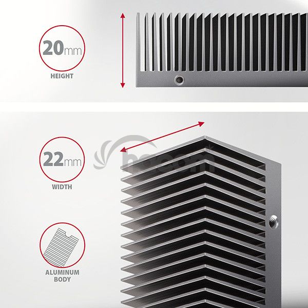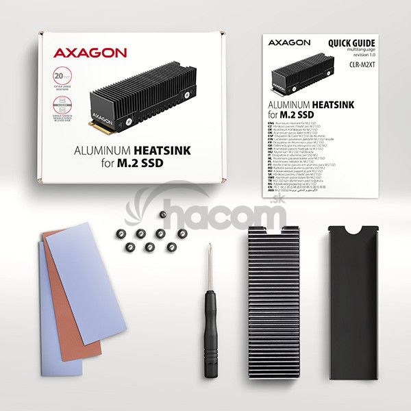 - AXAGON CLR-M2XT, hliníkový pasívny chladič pre jedno aj obojstranný M.2 SSD disk, výška 24 mm CLR-M2XT