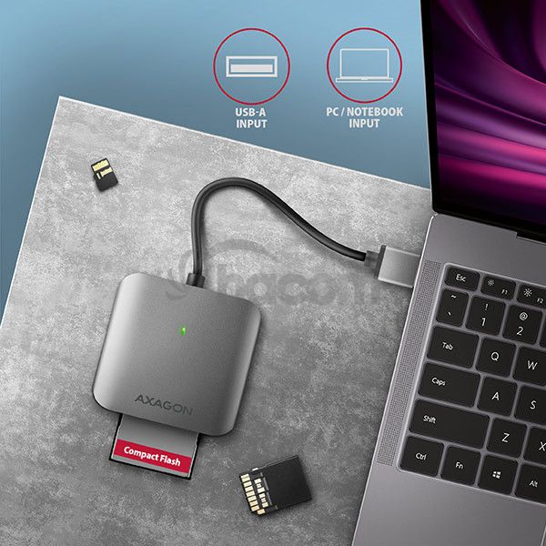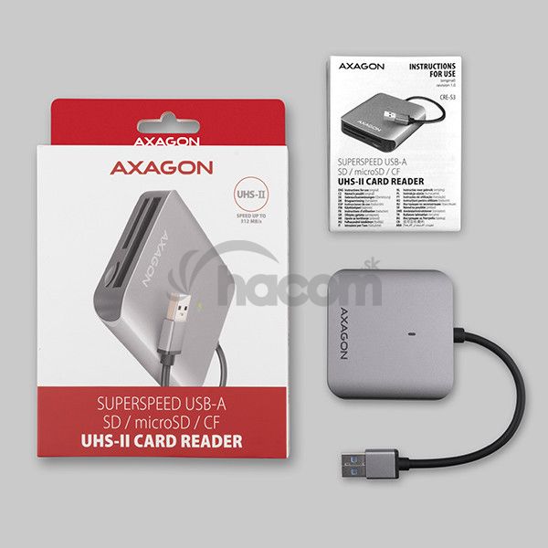 - AXAGON CRE-S3, USB-A 3.2 Gen 1 - SUPERSPEED čítačka kariet, 3-slot & lun SD/microSD/CF, podpora UHS-II CRE-S3