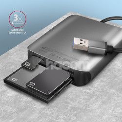 Hliníková 3in1 čítačka pamäťových kariet AXAGON CRE-S3 SUPERSPEED s USB 3.2 Gen 1 rozhraním podporuje všetky súčasné verzie SD a microSD kariet vrátane SDXC a microSDXC s kapacitou až 2TB. Ďalej podporuje CF karty s kapacitou až 128PT.Vďaka USB 3.2 Gen 1 (predtým USB 3.0) rozhranie dosahuje čítačka výrazne vyšších prenosových rýchlostí oproti čítačkám s USB 2.0 rozhraním. UHS-II karty dosahujú rýchlosť až 156 MB/s (full-duplex) resp. 312 MB/s (half-duplex) , podpora starších USH-I kariet (max rýchlosť 104 MB/s) je samozrejmosťou.