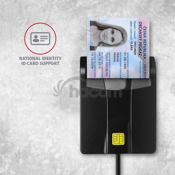 • Vyhovuje Microsoft WHQL USB Smart Card Reader.