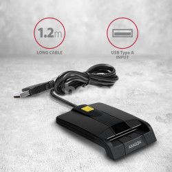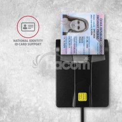 Kompaktné stolné čítačka Smart card / ID card AXAGON CRE-SM3 FlatReader s USB 2.0 rozhraním. Card reader podporuje všetky bežné formáty kontaktných Smart kariet, čipových kariet a ďalších kariet vrátane kontaktných bankových platobných kariet alebo kontaktných elektronických občianskych preukazov *. Čítačka je plne kompatibilná s aplikáciou eObčanka.Kompatibilita so všetkými bežnými OS ako Windows, Linux a Mac OS umožňuje široké využitie. Múdra LED indikácia svieti len krátku chvíľu po zmene aktivity, potom zhasne a neruší užívateľa zbytočným svitom. Kompaktný dizajn, kvalitné prevedenie, protišmykové podložky a dostatočne dlhý kábel zaisťujú jednoduché a bezproblémové použitie.