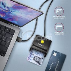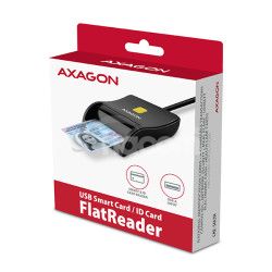 Kompaktná stolná čítačka Smart card/ID card AXAGON CRE-SM3N FlatReader s USB 2.0 rozhraním. Card reader podporuje všetky bežné formáty kontaktných Smart kariet , čipových kariet a ďalších kariet vrátane kontaktných bankových platobných kariet alebo kontaktných elektronických občianskych preukazov* . Čítačka je plne kompatibilná s aplikáciou eObčanka .Kompatibilita so všetkými bežnými OS ako Windows, Linux, Mac OS a Android umožňuje široké využitie ako na stolných počítačoch a notebookoch, tak na telefónoch a tabletoch . Múdra LED indikácia svieti len krátku chvíľu po zmene aktivity, potom zhasne a neruší užívateľa zbytočným svitom. Kompaktný dizajn , kvalitné prevedenie, protišmyková podložka a dostatočne dlhý kábel zaisťujú jednoduché a bezproblémové použitie.