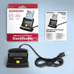 Univerzálna stolná čítačka Smart card/ID card AXAGON CRE-SM4N StandReader s USB 2.0 rozhraním. Card reader podporuje všetky bežné formáty kontaktných Smart kariet , čipových kariet a ďalších kariet vrátane kontaktných bankových platobných kariet alebo kontaktných elektronických občianskych preukazov* . Čítačka je plne kompatibilná s aplikáciou eObčanka .Kompatibilita so všetkými bežnými OS ako Windows, Linux, Mac OS a Android umožňuje široké využitie ako na stolných počítačoch a notebookoch, tak na telefónoch a tabletoch . Múdra LED indikácia svieti len krátku chvíľu po zmene aktivity, potom zhasne a neruší užívateľa zbytočným svitom. Praktický dizajn , kvalitné prevedenie, protišmyková podložka a dostatočne dlhý kábel zaisťujú jednoduché a bezproblémové použitie.