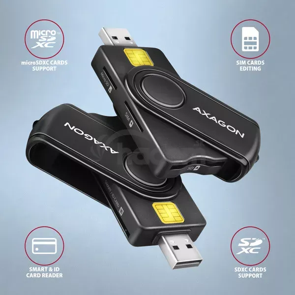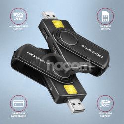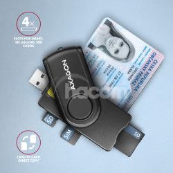 - AXAGON CRE-SMP2A, USB-A + USB-C PocketReader 4-slot čítačka Smart card (eObčanka) + SD/microSD/SIM CRE-SMP2A