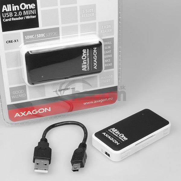 - AXAGON CRE-X1, USB 2.0 externá MINI čítačka 5-slot ALL-IN-ONE CRE-X1