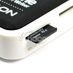 Veľmi kompaktný all-in-one čítačka pamäťových kariet AXAGON CRE-X1 MINI podporuje všetky súčasné pamäťové karty vrátane všetkých verzií kariet SDHC a SDXC.Je vybavená piatym slotom pre priamu podporu populárnych miniatúrnych microSD kariet.