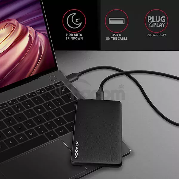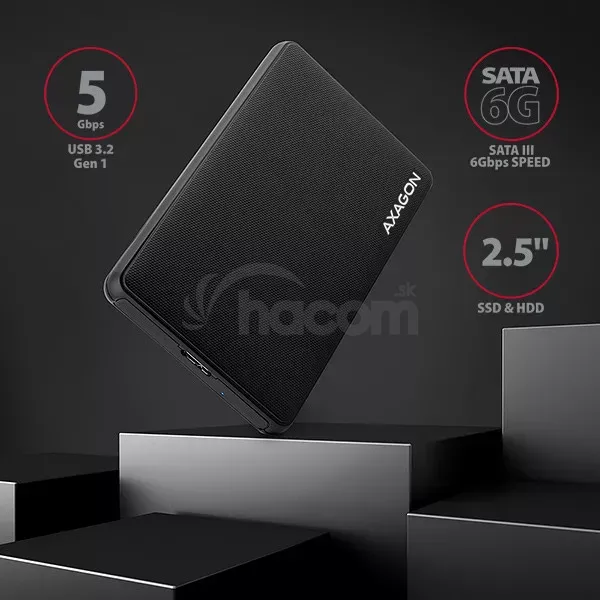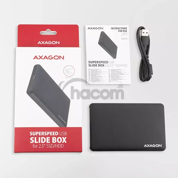 - AXAGON EE25-SL, USB 3.2 Gen 1 - SATA 6G, 2.5" SLIDE box, bezskrutkový, čierny