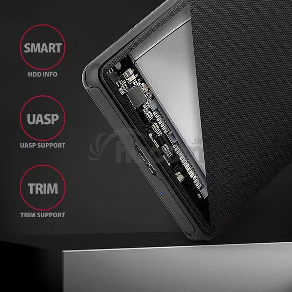 Ľahký Bezšroubková externý AXAGON EE25-SL SLIDE BOX s USB 3.2 Gen 1 (USB 3.0) a SATA 6G rozhraním je určený pre všetkých 2.5 "SATA pevné disky alebo SSD.SATA 6G rozhranie s podporou UASP dovolí užívať si rýchlosť moderných SSD diskov. Podpora funkcie TRIM pre obmedzenie pozvoľné degradácie výkonu SSD v čase. Čítanie SMART informácií monitorujúcich kondíciu externého disku. Podpora uspávanie pripojeného disku aj boxu.