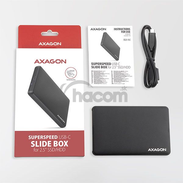- AXAGON EE25-SLC, USB-C 3.2 Gen 1 - SATA 6G 2.5 "SLIDE box, Bezšroubková, čierny EE25-SLC