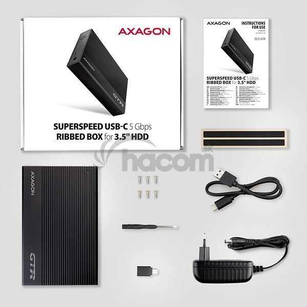- AXAGON EE35-GTR, USB-C 5Gbps - SATA 6G 3.5" RIBBED box, čierny EE35-GTR